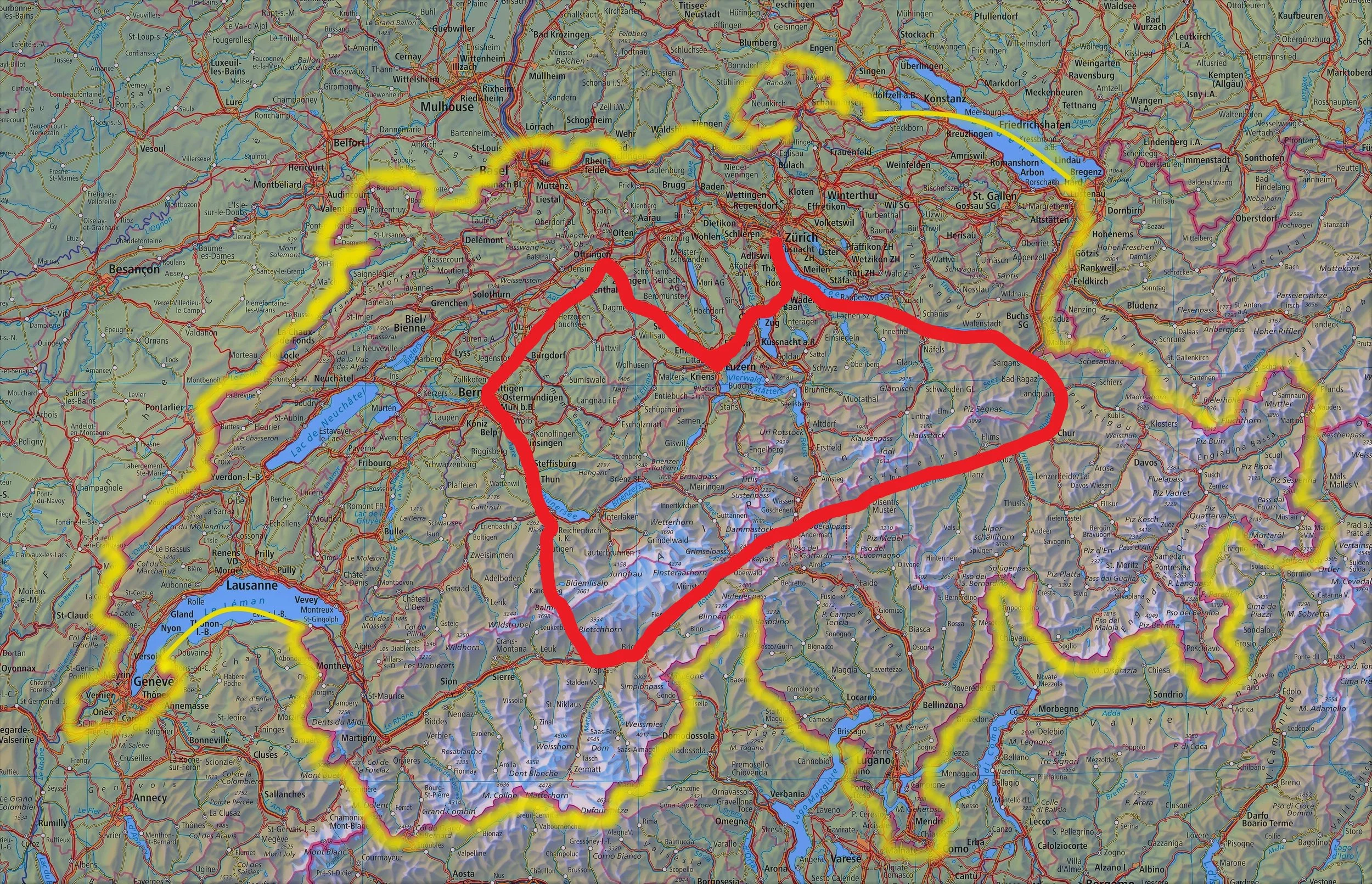 Route: Route: Lucerne - Zurich - Chur - Disentis/Mustér - Andermatt - Brig - Bern or Olten - Lucerne
